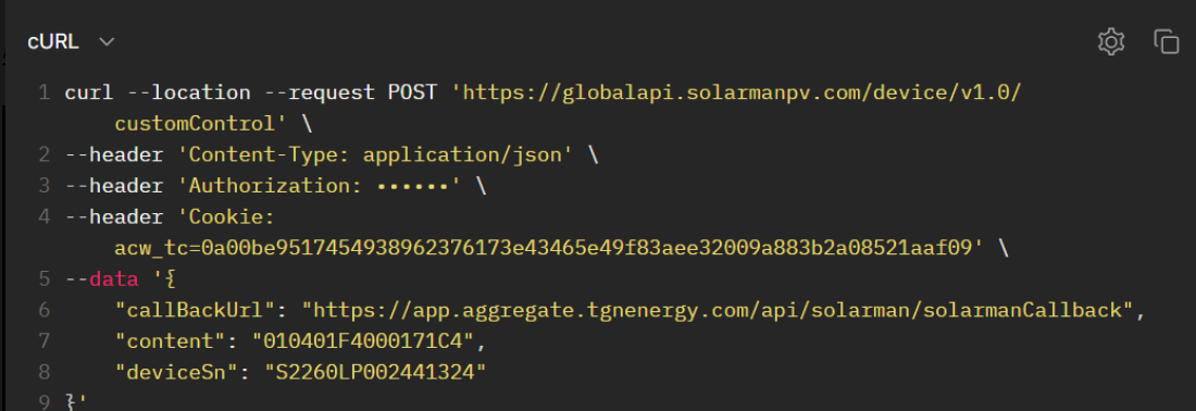 Firstly, plz check if you use correct url: https://globalapi.solarmanpv.com Your account is the "International Data Center", we kindly remind that you use the new OPENAPI domain https://globalapi.solarmanpv.com to access the platform, replacing the ...