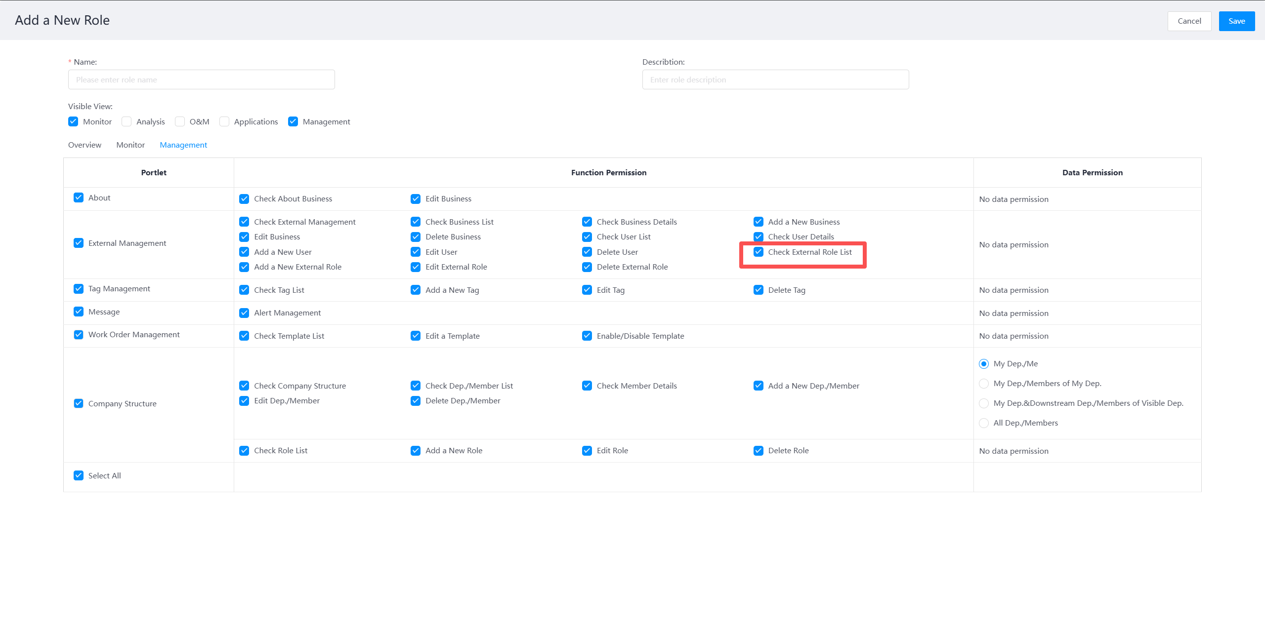 If you are an internal member created by a business super administrator, please check the box to view the external role list. Once checked, internal members can authorize power plants created by super administrators.