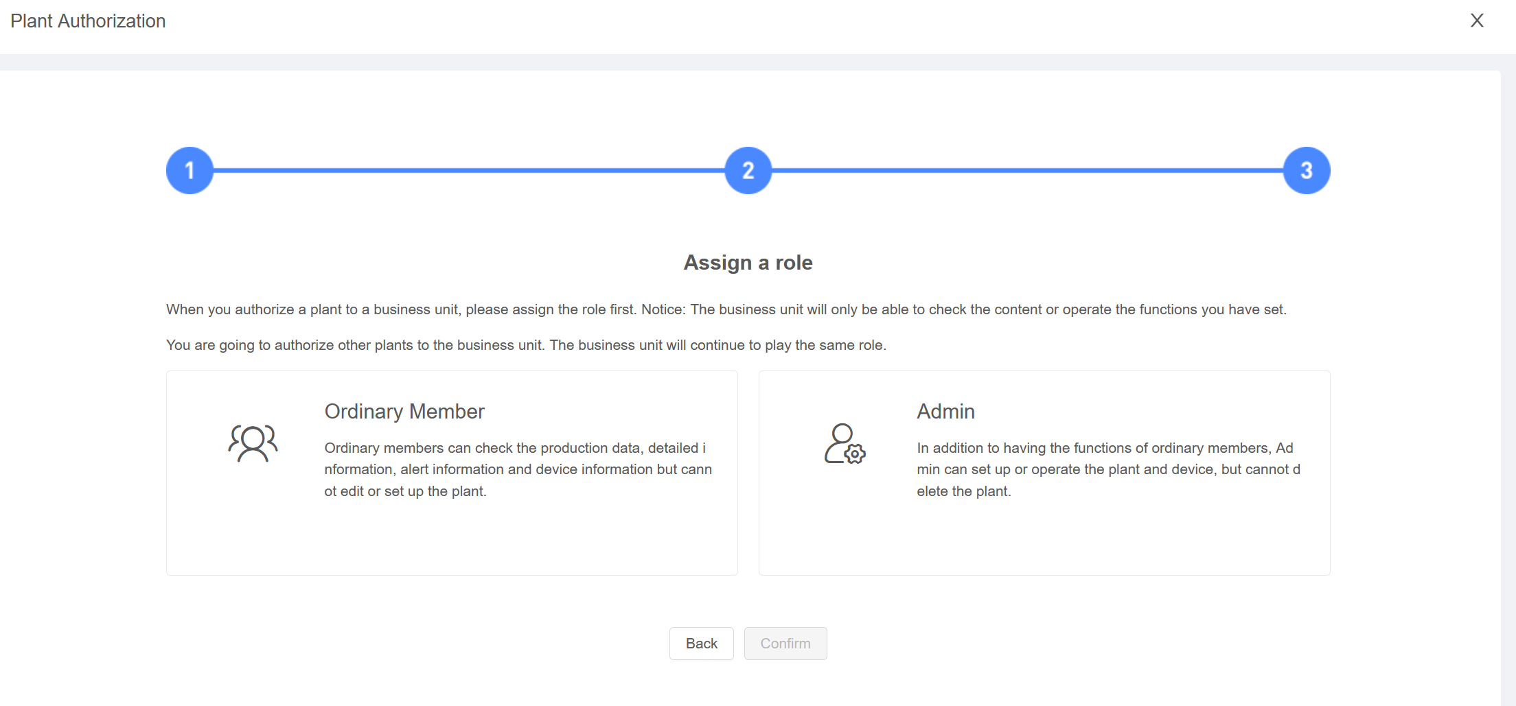 Ordinary member: you can view the power generation data, detailed information, alarm information, and device information of the power station, but you can't edit or set up the power station.