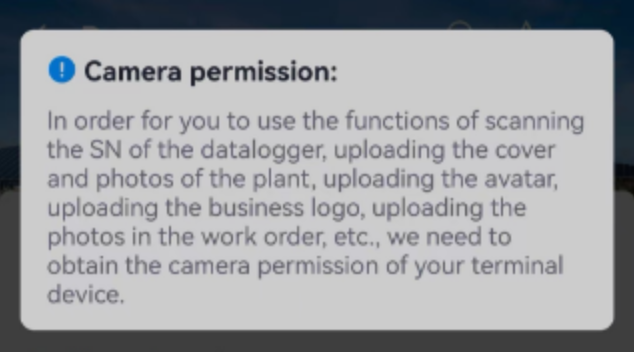 2.Click the【Add Datalogger】scanning icon, and when using it for the first time, the page prompts that you need to add the permission of "using the camera" to facilitate your code scanning identification.