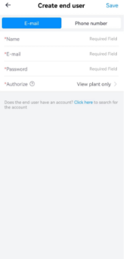 Please complete the user information according to the prompts on the end user interface. After completing the user information, click the【Save】button on the upper right corner to complete the end user creation.