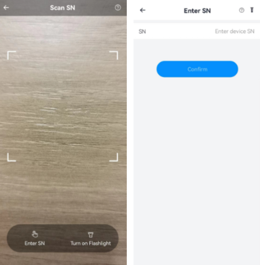 3.After authorization, you can select to directly scan the barcode or QR code on the device to add, or manually enter the serial number to add.