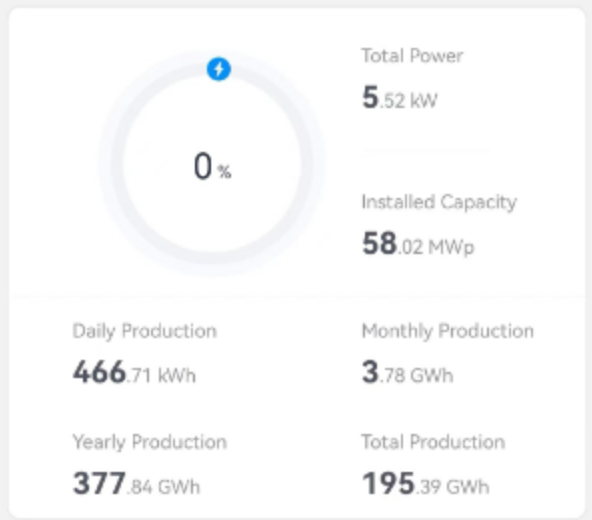 - Daily Production: The sum of the daily power generation of all power plants under the current user's data authority