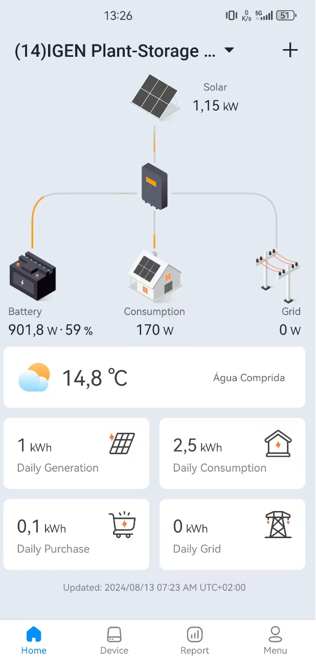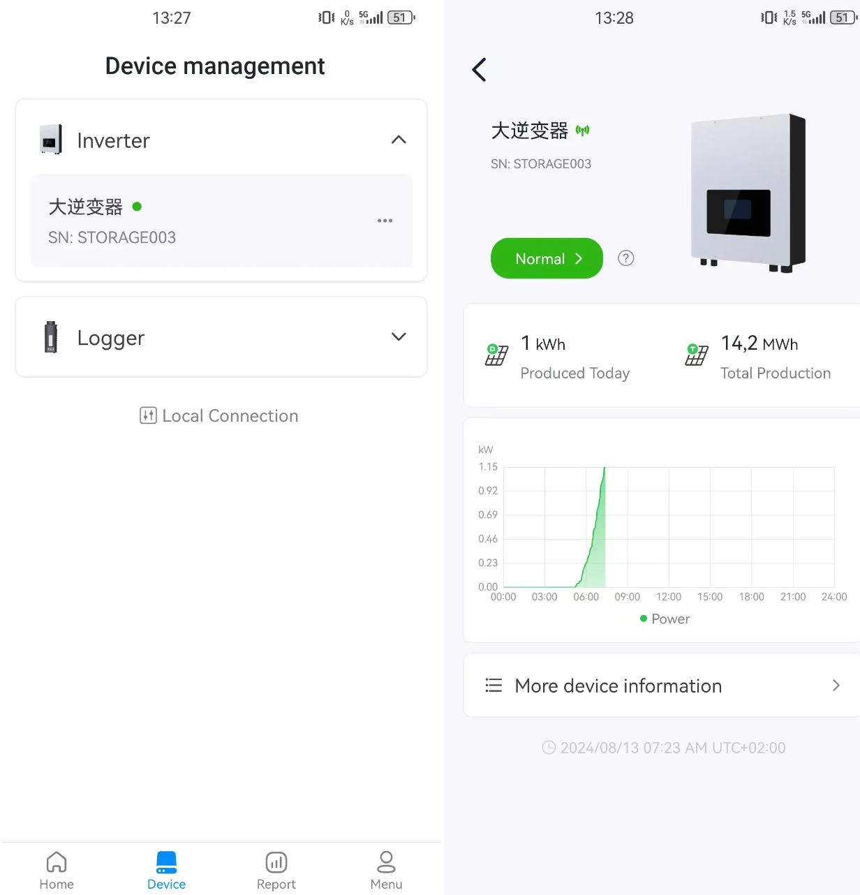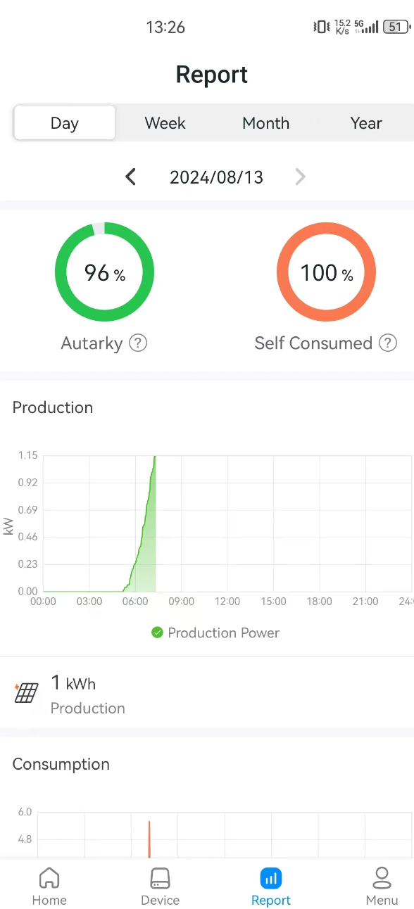Users can check various data on this page. E.g. real-time producing power, flow chart, statistic report, production, consumption and etc,.