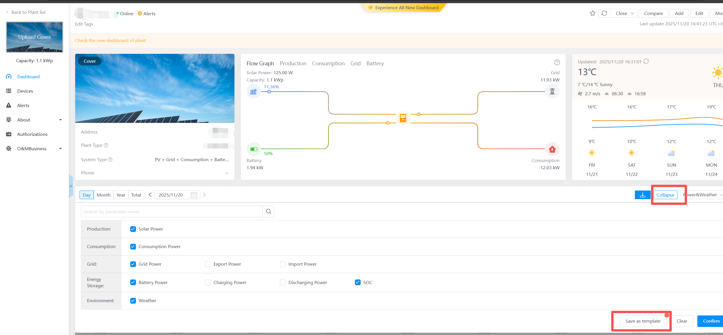 In the inverter history interface, select parameters, choose the desired ones, and click to save as a template。 If the interface does not display 'Save as Template', please check if you have reached the custom template limit (10). You need to delete ...
