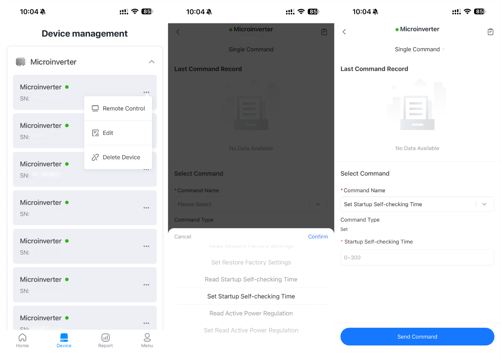 3. In the control interface, select the parameter you wish to adjust and send the command