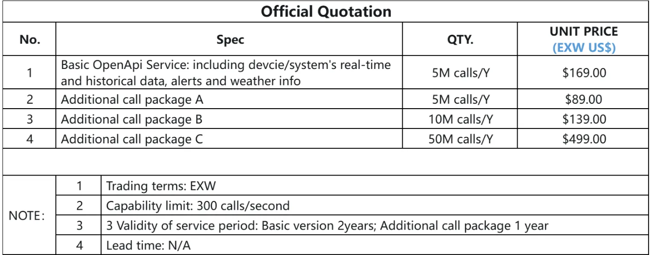 First, the API service is free for SOLARMAN Smart user. If you are a SOLARMAN Business user or an SOLARMAN Smart user with more than three Plant, you will be required to pay for the API service.