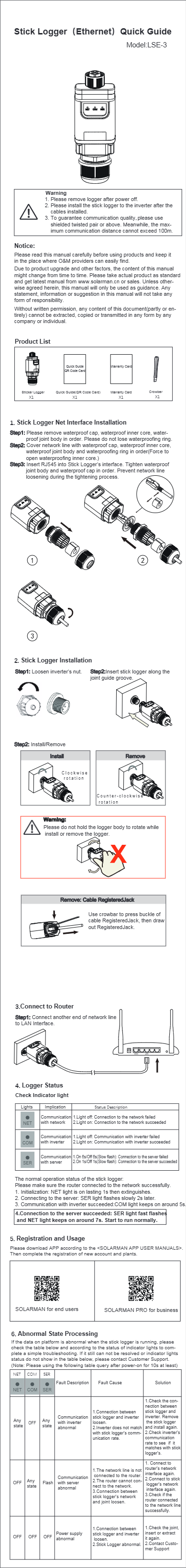 LSE-3 stick Logger (Ethernet) Quick Guide