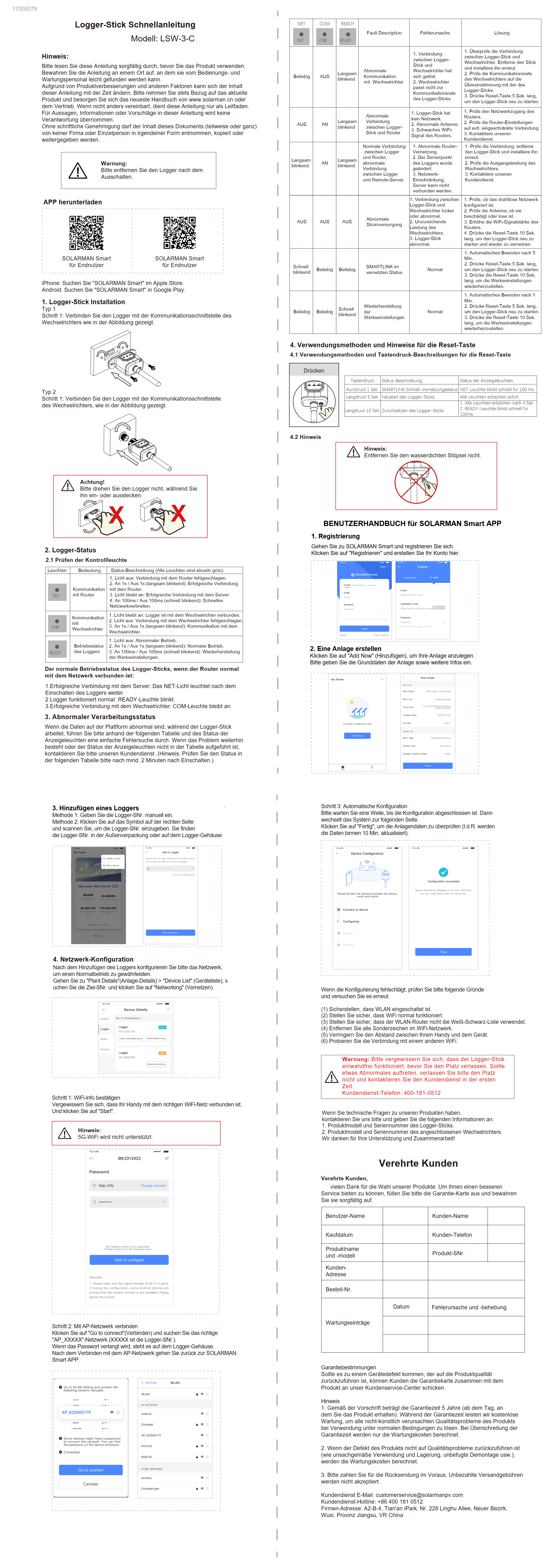 LSW-3-C Quick Installation Guide - SOLARMAN Smart (Phase 3) German
