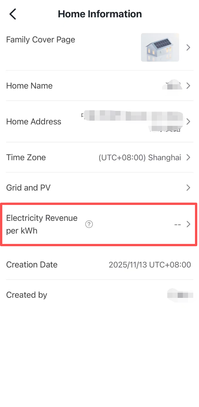1. Click the Family Settings section in the menu panel 2. Locate the plant you wish to modify and tap Details 3. Find “Revenue per Kilowatt-Hour” under Family Information 4. Enter the desired electricity rate 5. Save to complete the setup 6. After ...