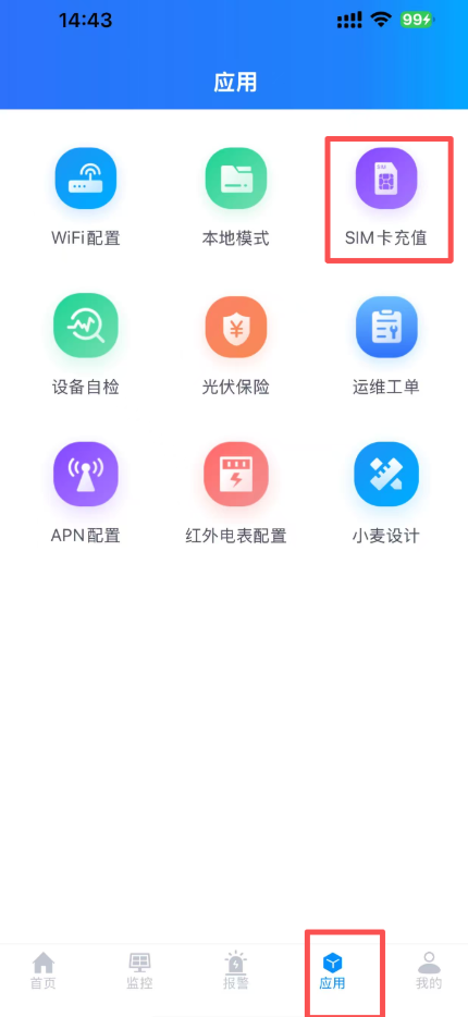 1. SOLARMAN Smart users: Go to Menu > Account Info > Recharge Services. SOLARMAN Business users: Go to Applications > SIM Card Recharge to confirm if the SIM card has an outstanding balance. If so, recharge promptly.