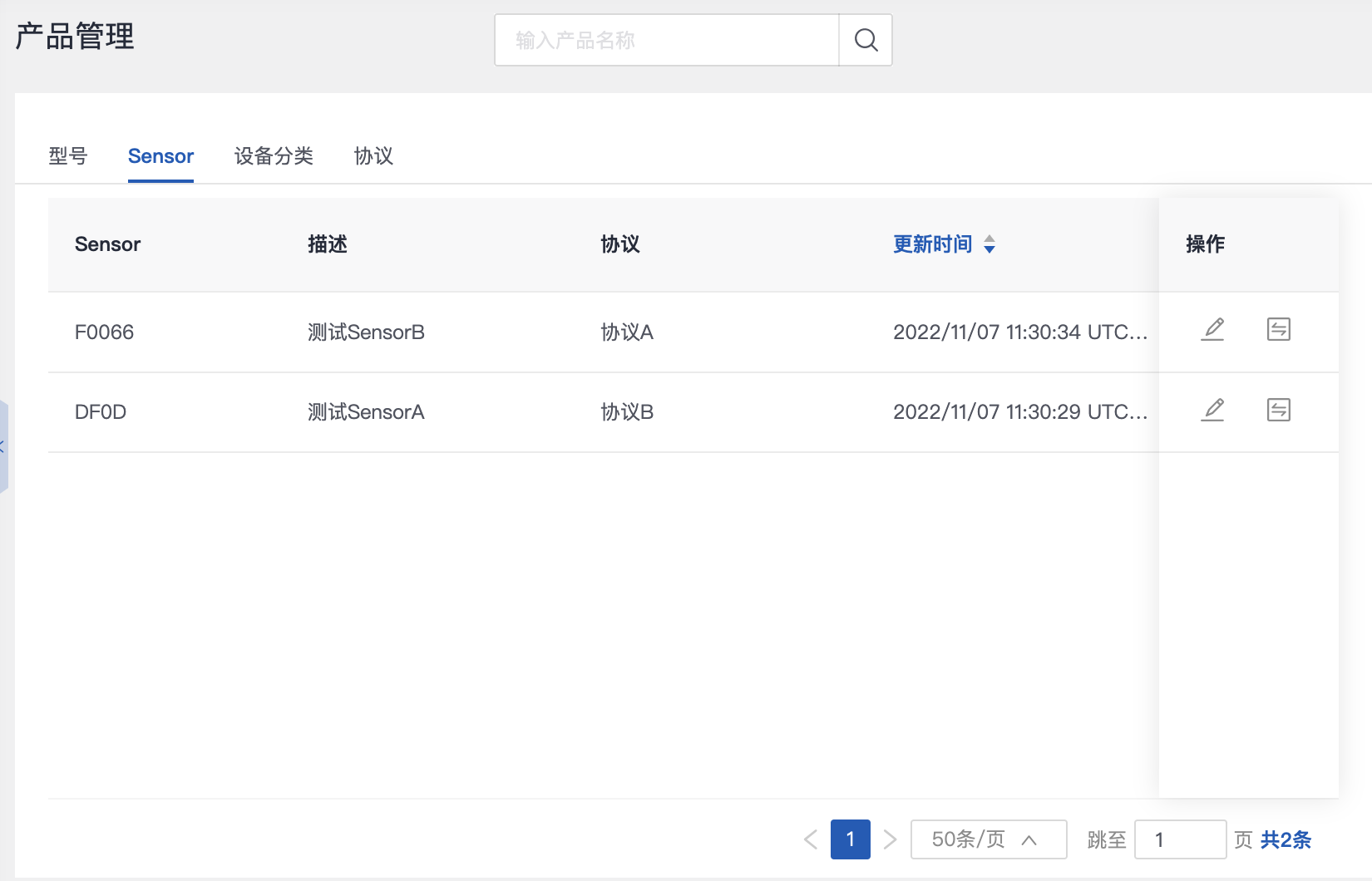 而【产品管理】模块将这些设备集合的数据记录进行统一的汇总管理。