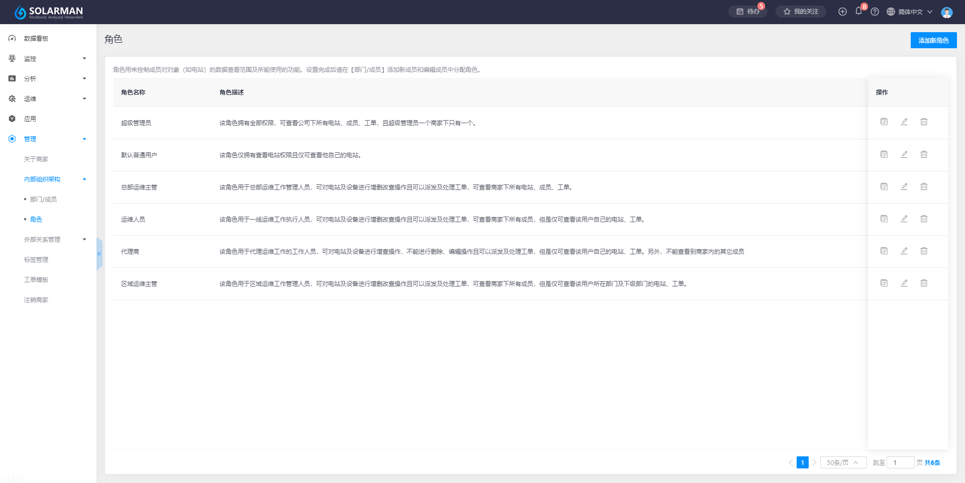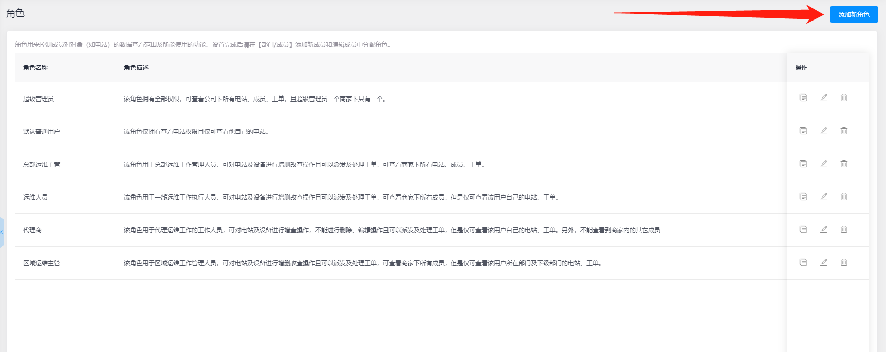 小麦商家版的账号功能权限以角色为基础,通过划分不同的角色分配不同的功能权限,并在添加成员时选择对应的角色,实现成员的功能权限的区分和隔离,系统预设六种常见角色,您可跟根据需要进行修改和添加新角色。