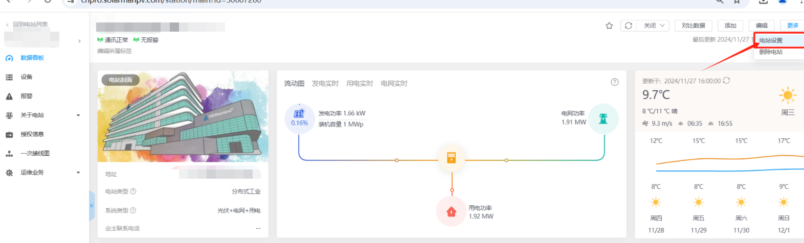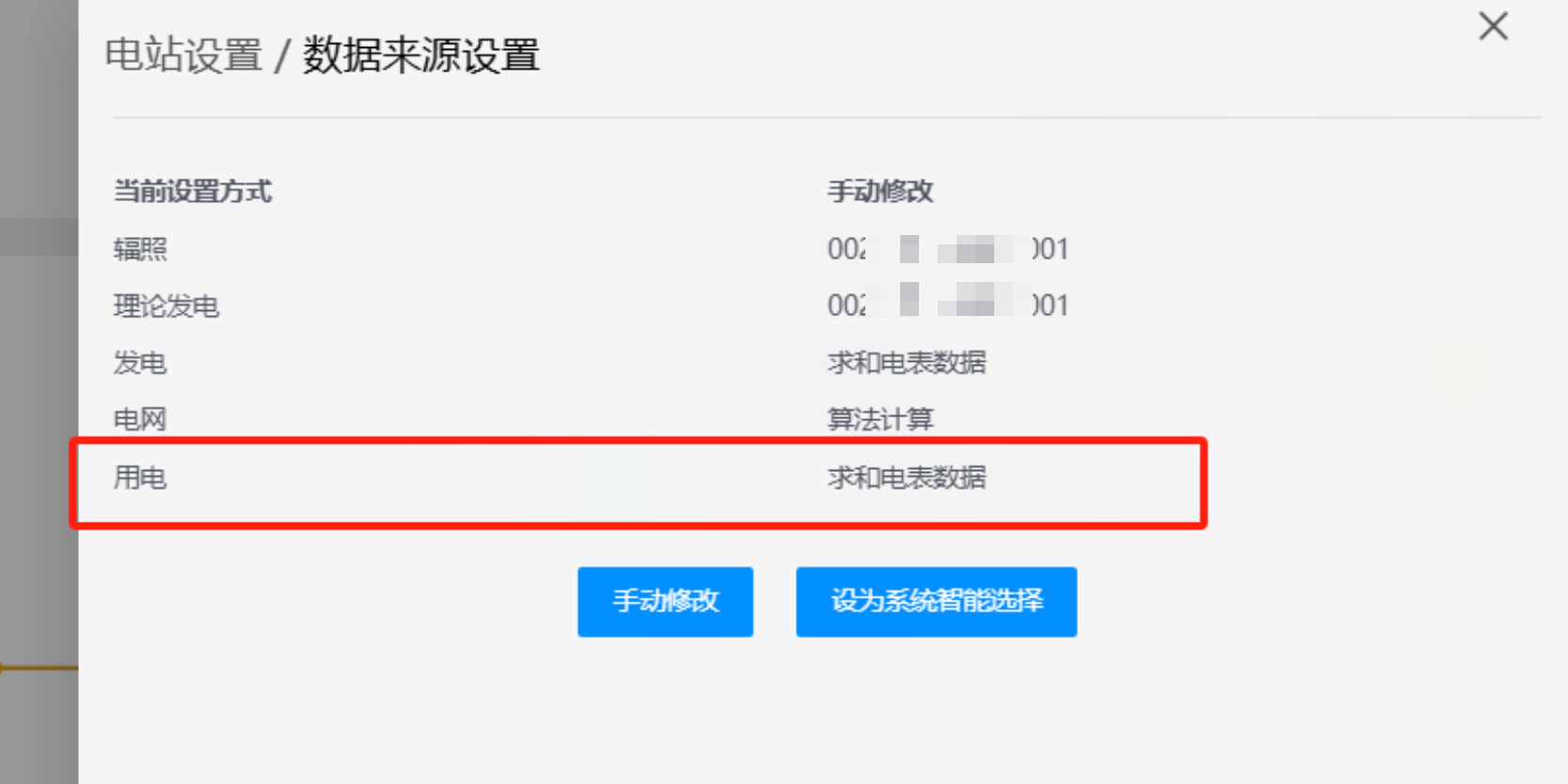 修改完成后,需同步修改电站数据来源,将数据来源用电侧改为电表