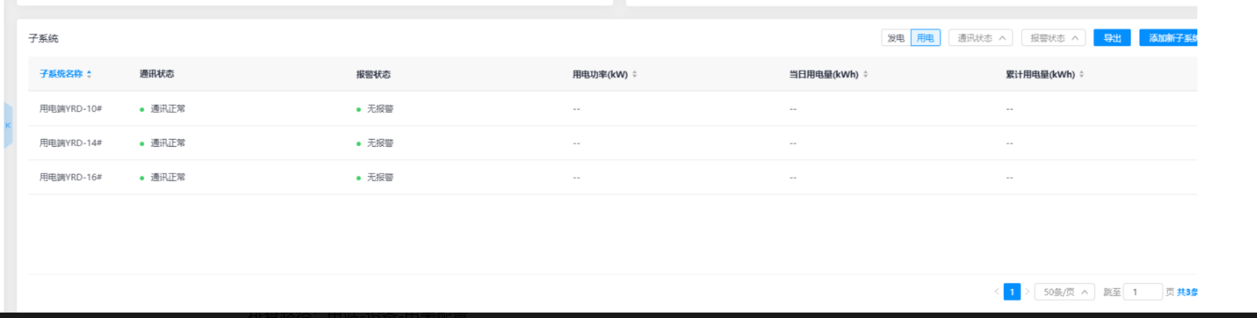电站内子系统数据查看为统计用电,子系统内添加的设备为电表,电表配置的安装位置为电网侧。