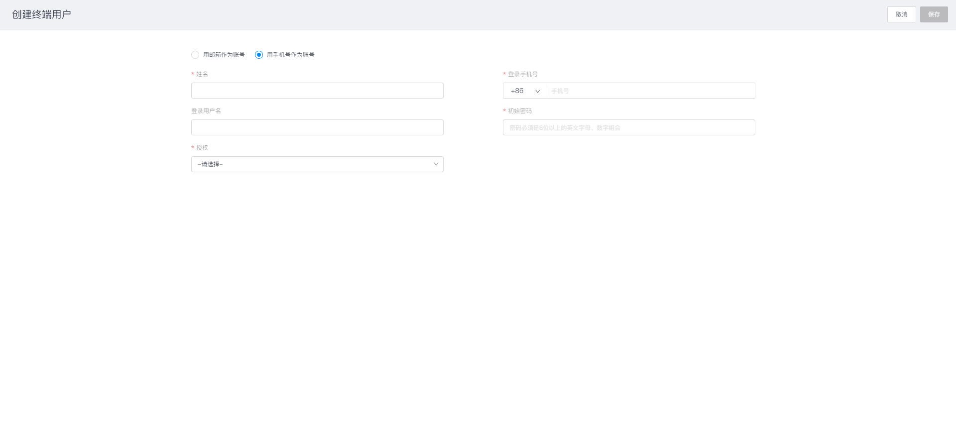 - 创建新用户:选择创建新用户时,页面跳转对应页面,您需要根据提示完善新用户的账号信息,然后点击【保存】完成外部用户账号的创建2.添加已有用户:选择添加已有用户时,页面中显示对应弹窗,在窗口中可查询已有用户的账号信息,输入用户名称后系统会模糊查询对应的用户账号,找到已有用户后设置对应权限从而完成添加