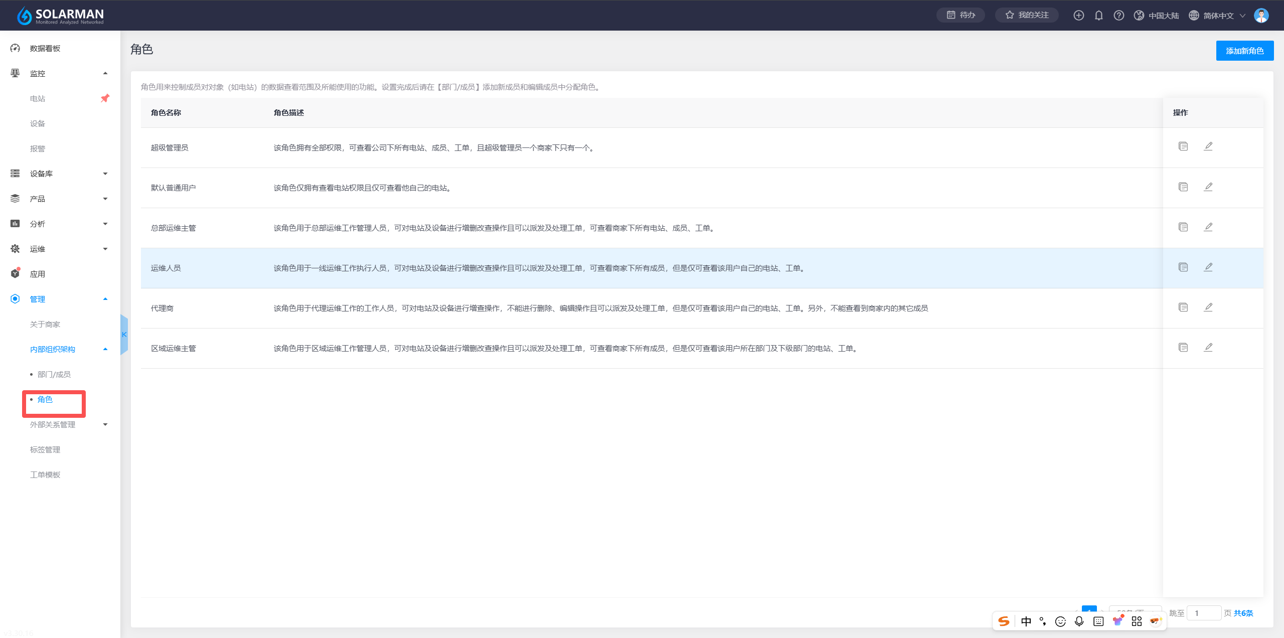 1、请先查看角色板块,确认您要给内部成员分配何种权限