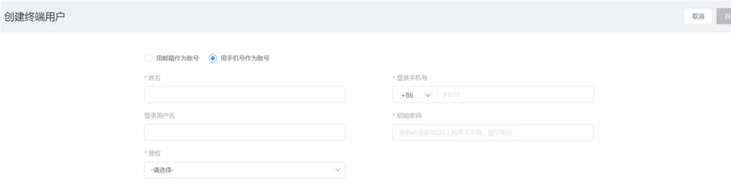 请点击创建新用户,并在创建新用户界面按照提示完善用户信息,完善用户信息后,点击右上角的【保存】按钮即可完成新用户创建。
