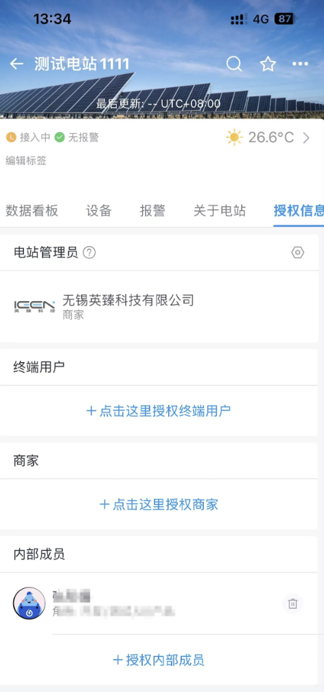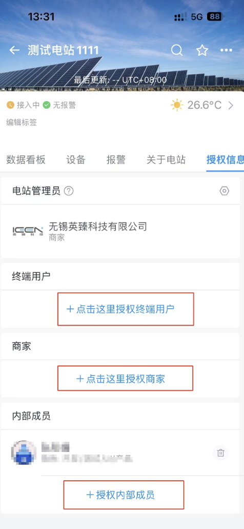 打开对应的电站,选择“授权信息"