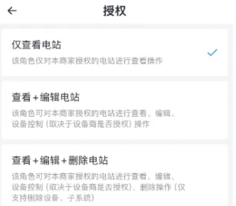 针对自建电站,电站的创建者可以通过“授权”操作,将电站的查看、编辑等权限分配给其他小麦平台的账号,以达到共享电站的目的。