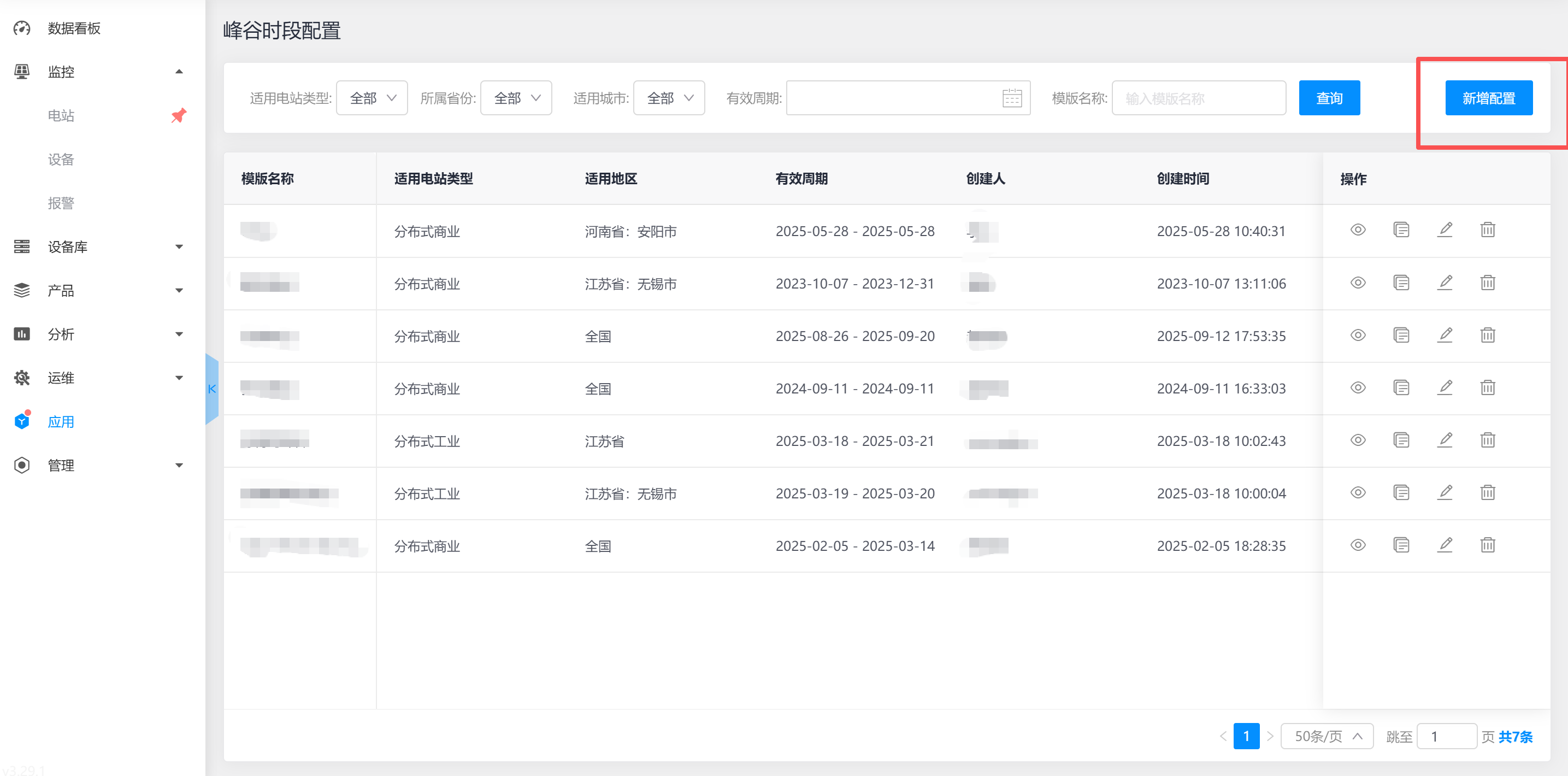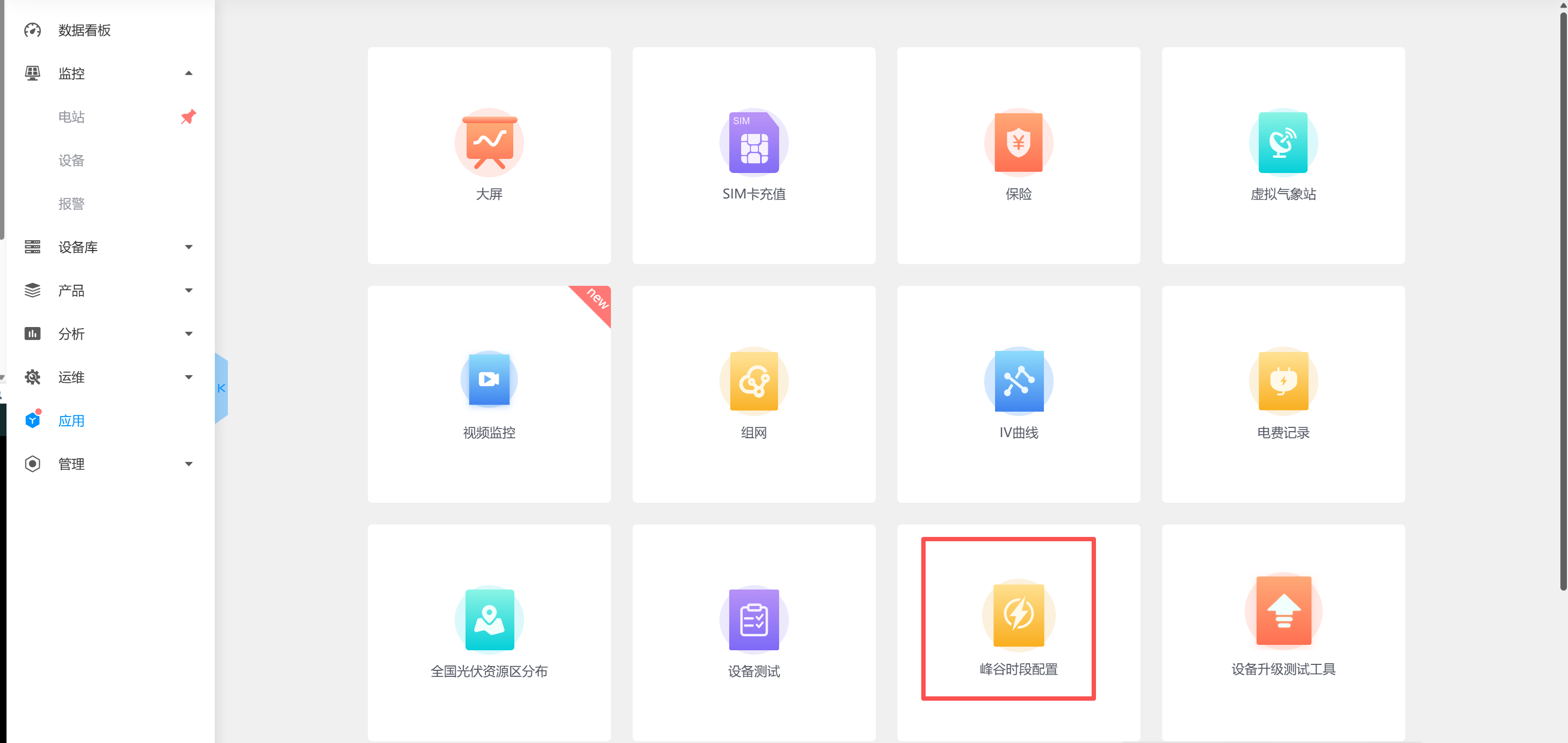 通过电站-设备,查看对应电站电表的峰谷时段