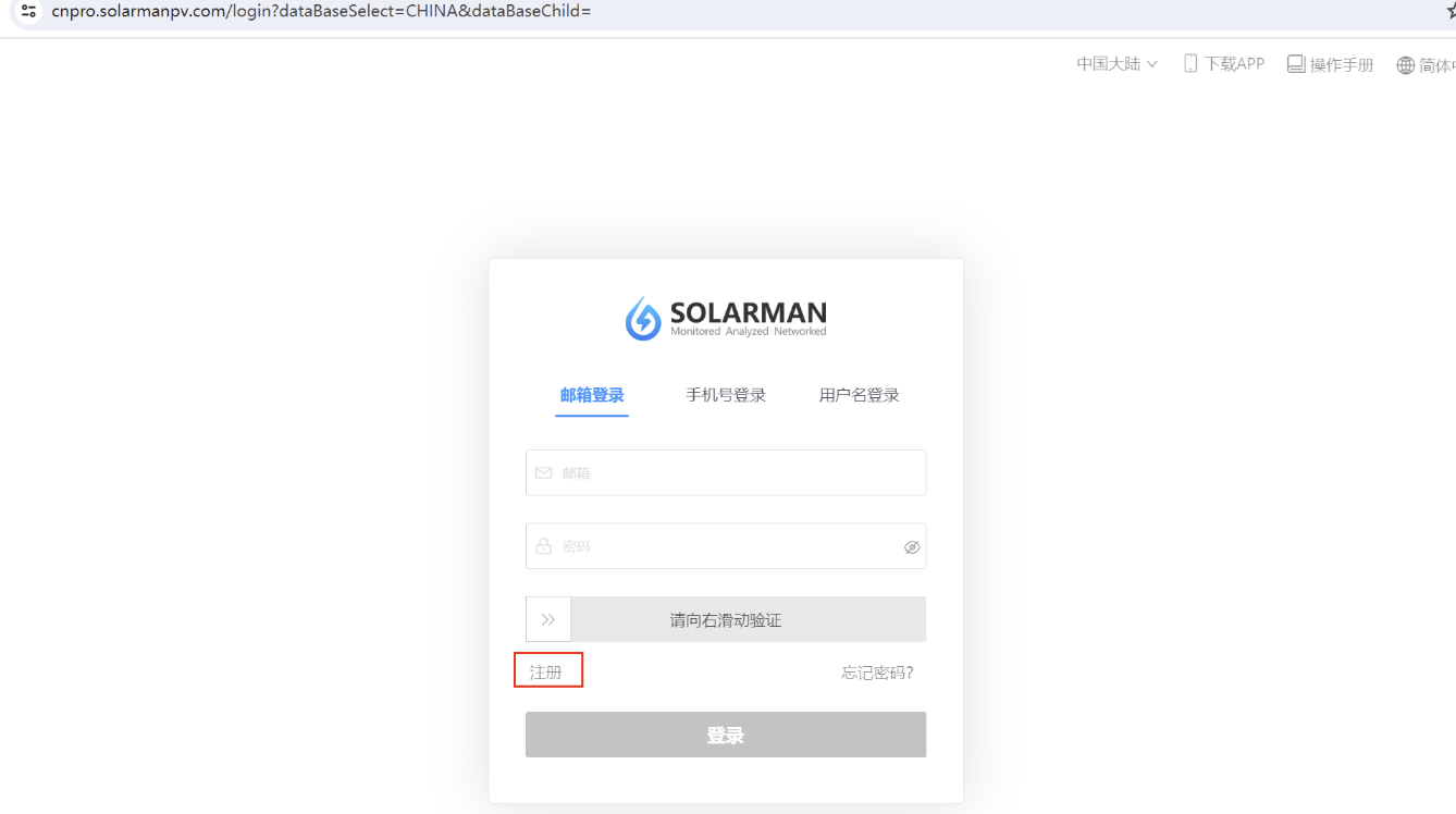 请您点击下图登录页中的注册按钮,进入注册页面。