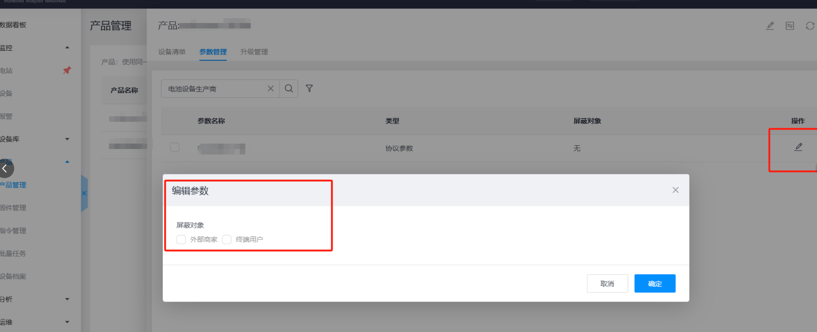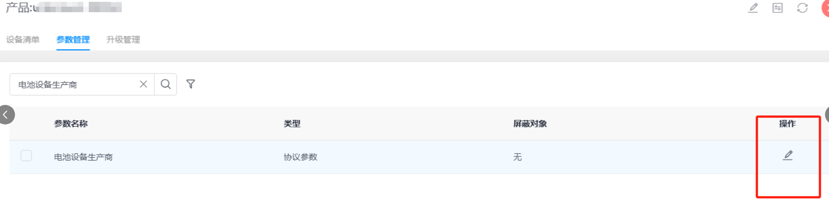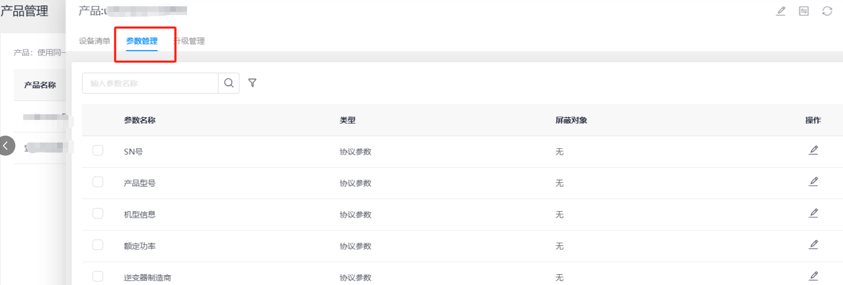 2、选择对应的产品--参数管理页面