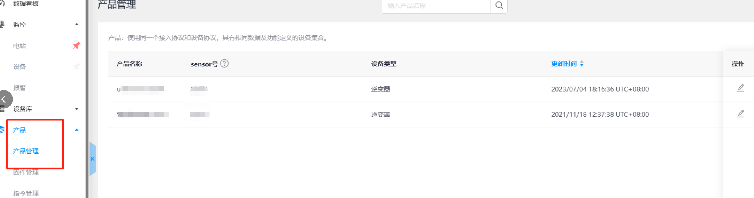 1、登陆设备商账号,点击产品--产品管理