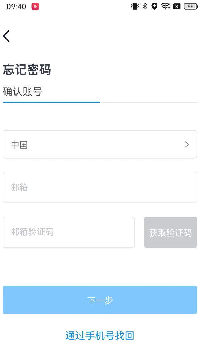 如果您在登录时忘记了您的账户密码,可以点击“忘记密码”,进入找回密码的流程。