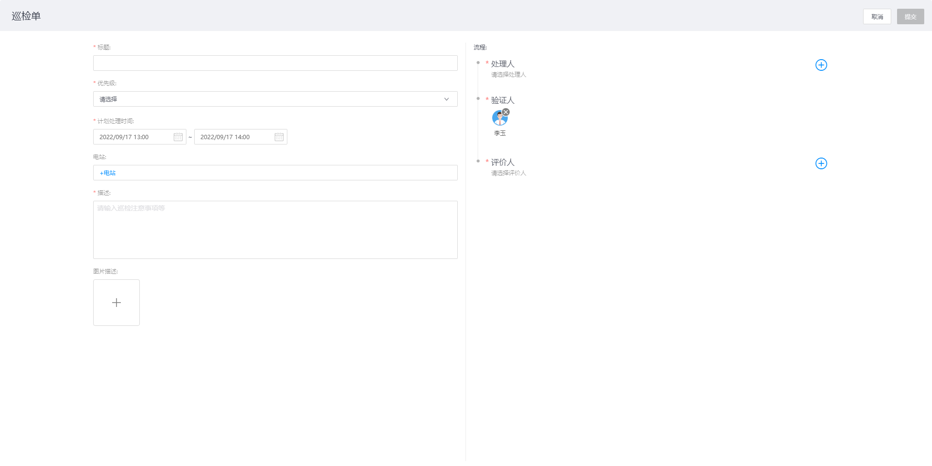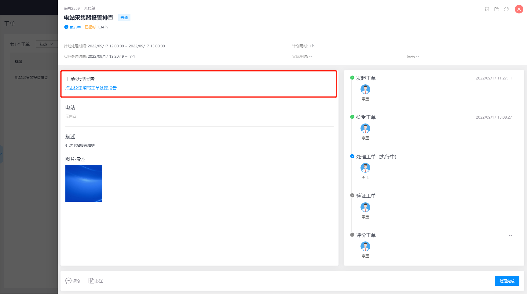 点击【开始处理】后,可在这里填写工单处理报告信息。