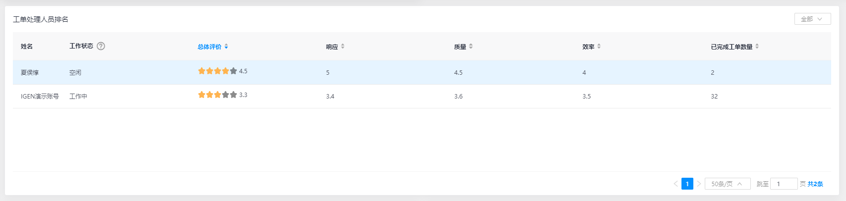 工单处理人员排名