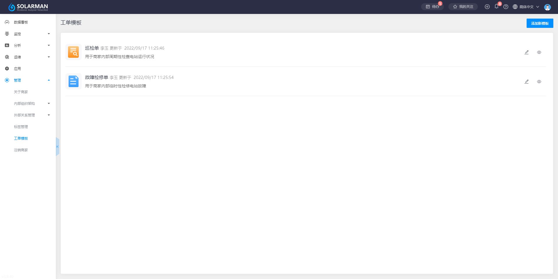 完成以上表单的配置信息后,点击【发布】即可显示在以下列表: