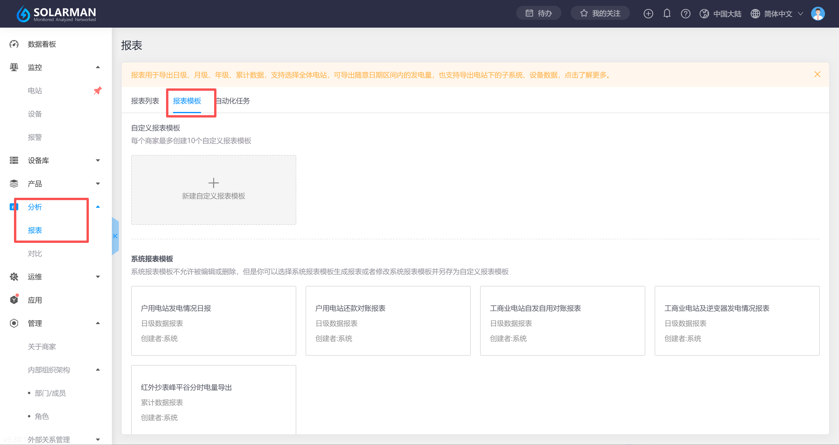 可以,您可以通过电脑端进行操作,操作路径为:分析-报表-报表模板。目前我们支持每个商家最多创建10个自定义报表模板。