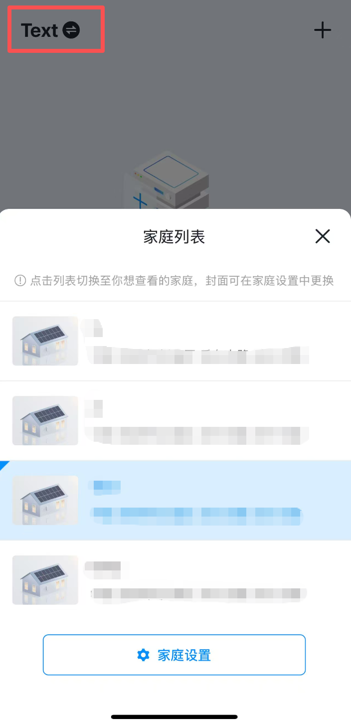 请点击到家庭板块,点击左上角的电站名称进行切换。