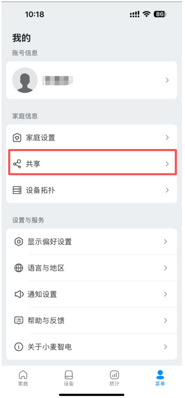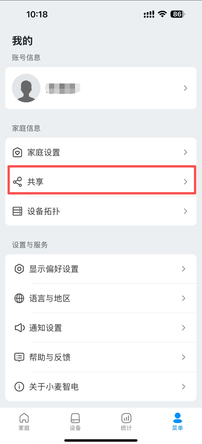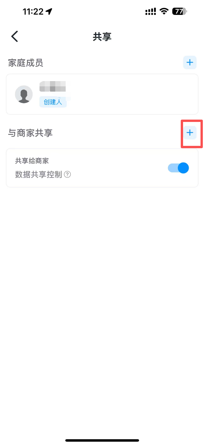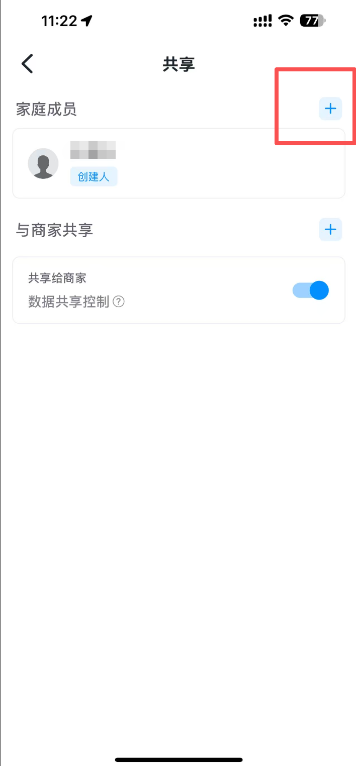 如果您是电站创建者,请在小麦智电中,点击菜单栏-共享-家庭成员-“+”号按钮进行授权,如需要授权安装商仅查看电站权限,请点击成员后确认。