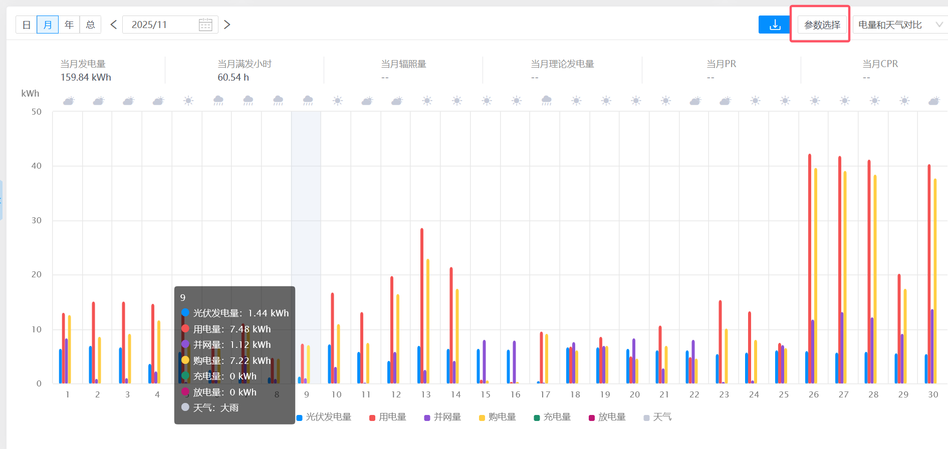 我如何查看当月的发电量/用电量/电池充电量/电池放电量/购电量/并网量等数据?【小麦商家】