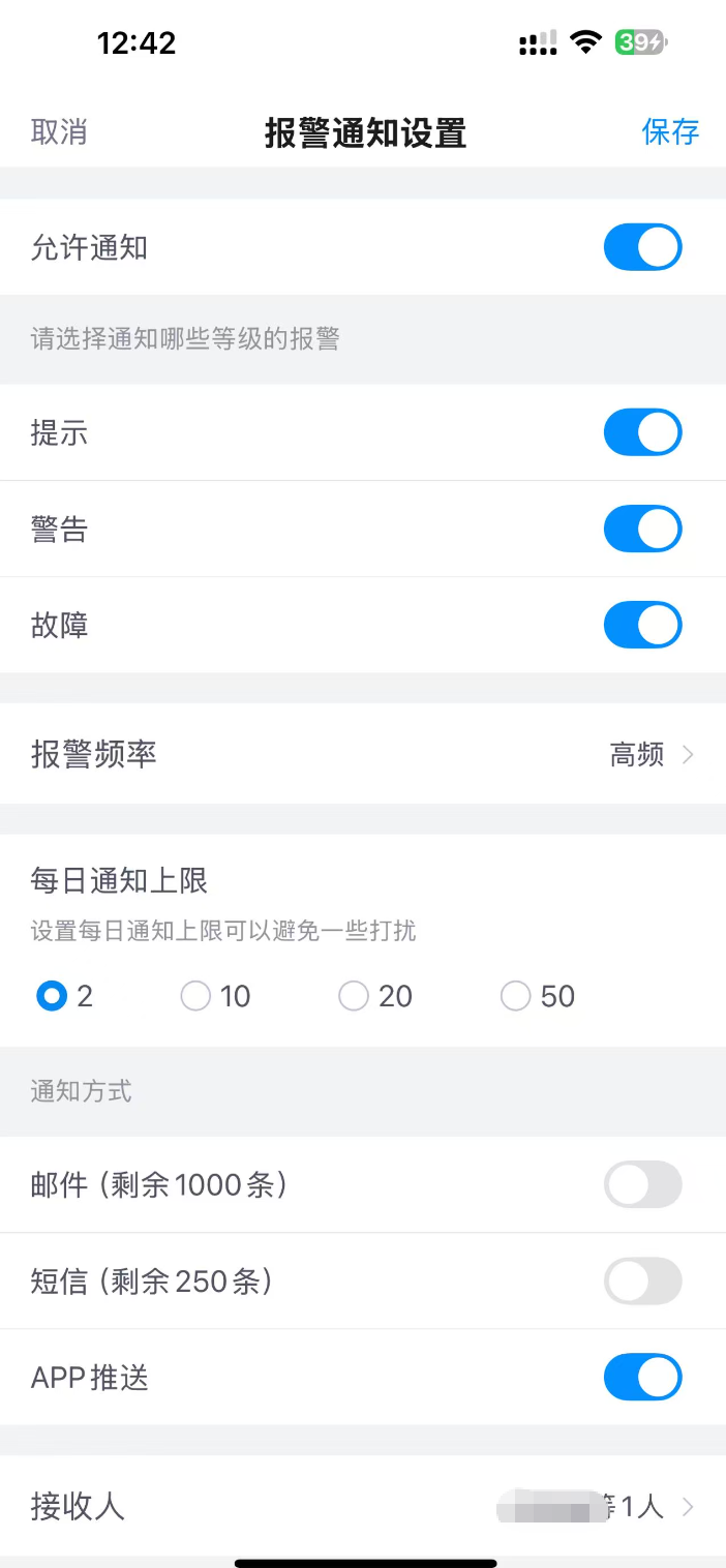 报警--报警通知设置--可以根据需求打开推送和邮件(短信)通知