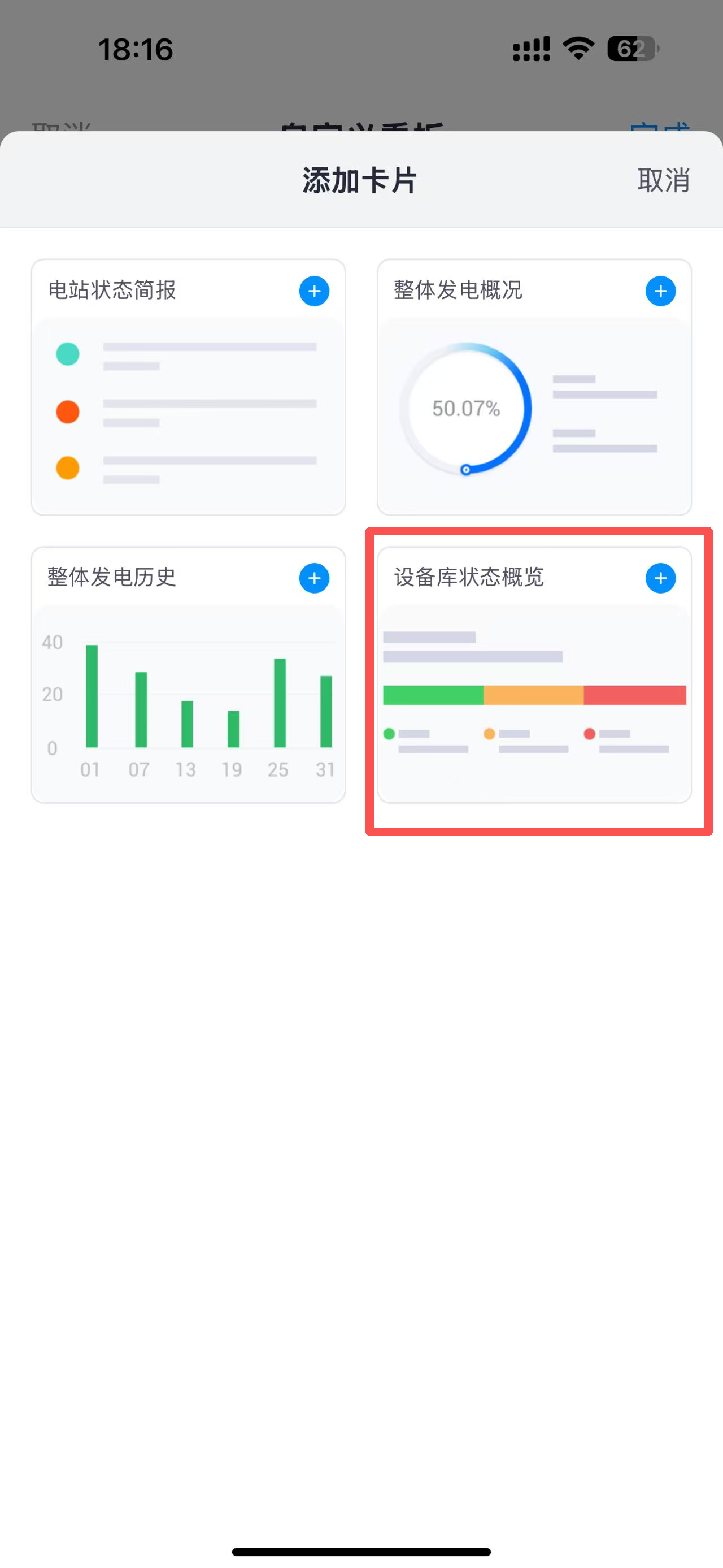 首页左上角--自定义看板--添加设备库--保存,即可添加设备库。