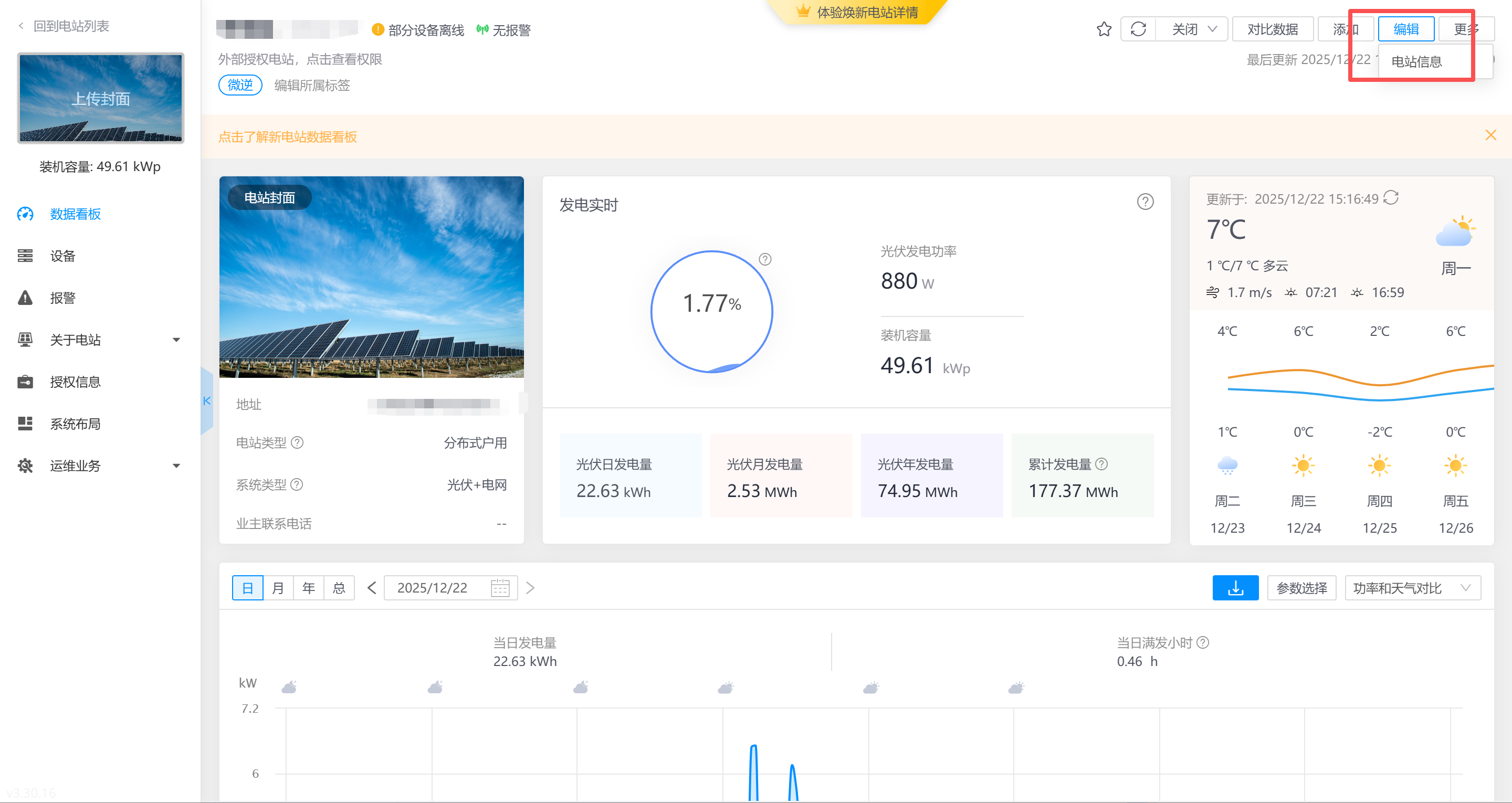 如果您是电站的创建者,请通过编辑-电站信息进行修改。
