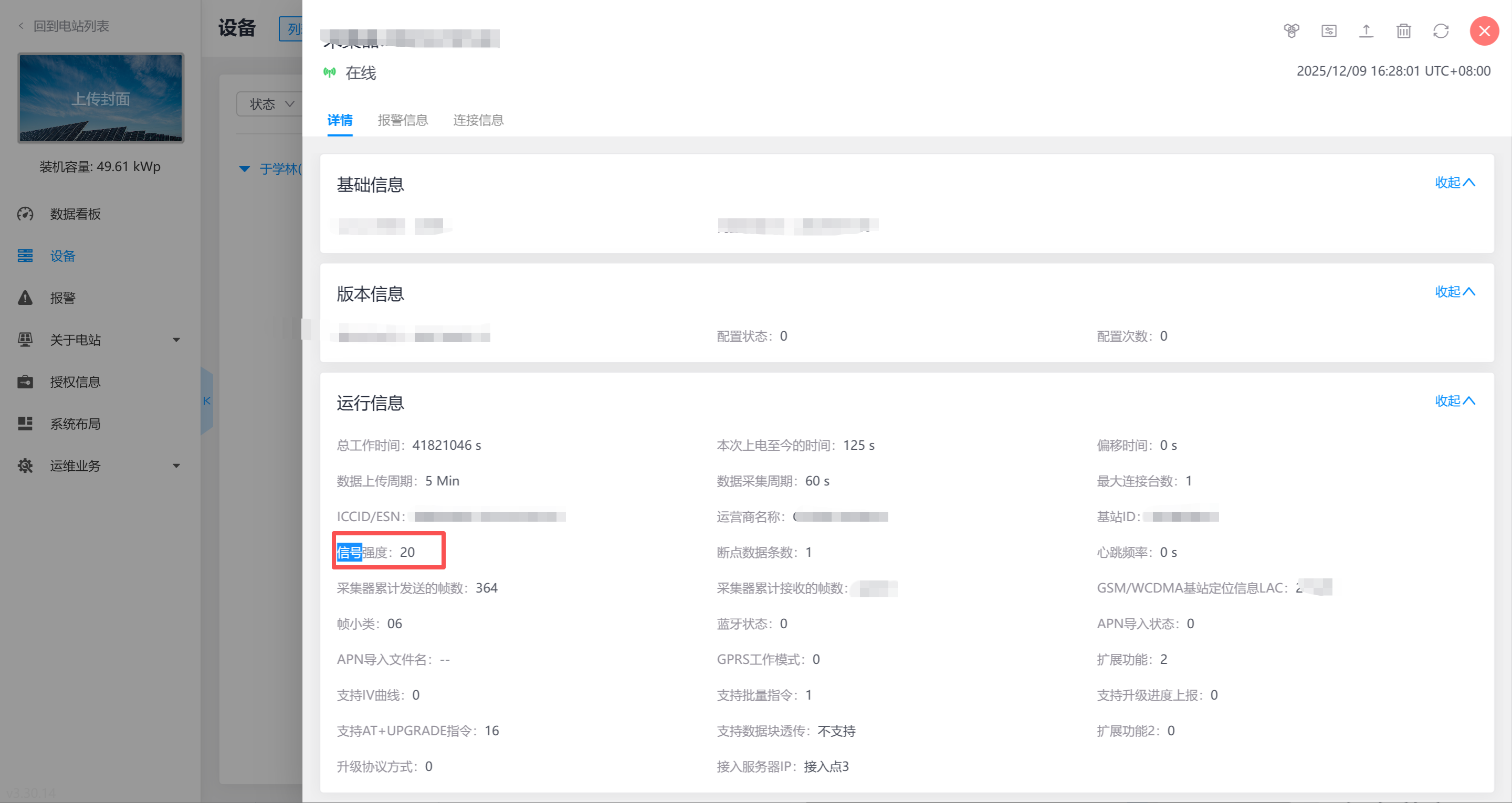 您可在应用界面查看SIM卡流量是否到期,采集器信号强度是否在15以上,如检查无问题,请提供设备SN以及相关截图提交工单联系平台售后处理