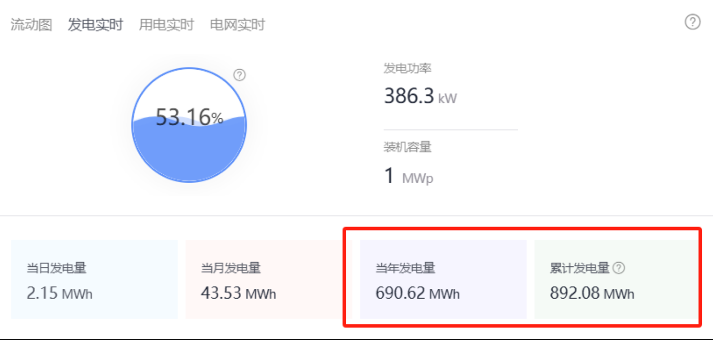 当电站内逆变器为已安装超过1年的设备,则电站内新添加的设备会出现累计发电量>当年发电量的情况,改值求和逆变器直传累计发电量。