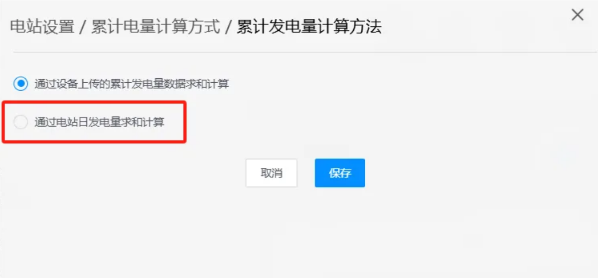 查询路径:电站设置——累计发电量计算方式——累计发电量计算方式