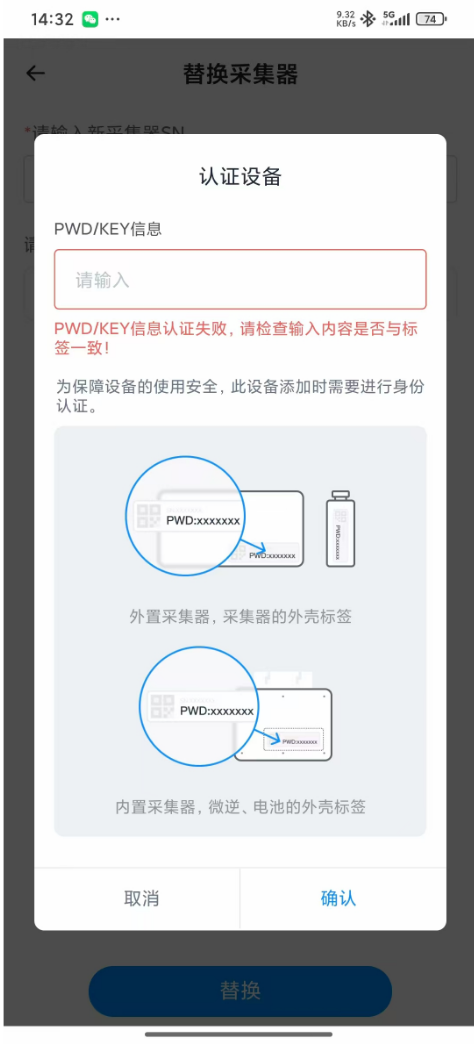 添加4G采集器到电站显示“PWD/KEY信息认证失败,请检查输入内容是否与标签一致”处理方案【小麦商家】