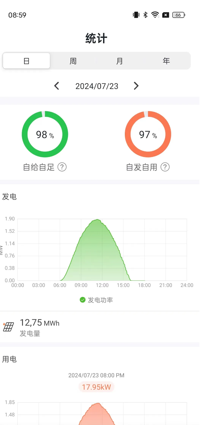 在此界面您可以看到家庭的一些统计数据与历史数据,您可以选择具体的日期和具体的条件进行查询,快速了解家庭的发电用电情况。