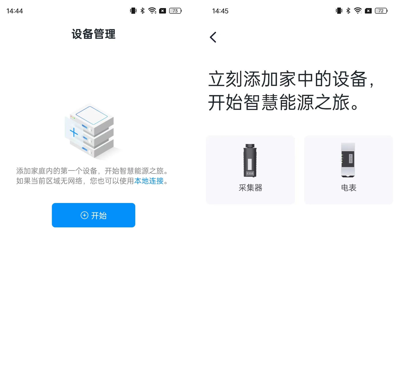 「设备」页面,点击“开始”按钮,进入添加页面,添加设备至该电站下