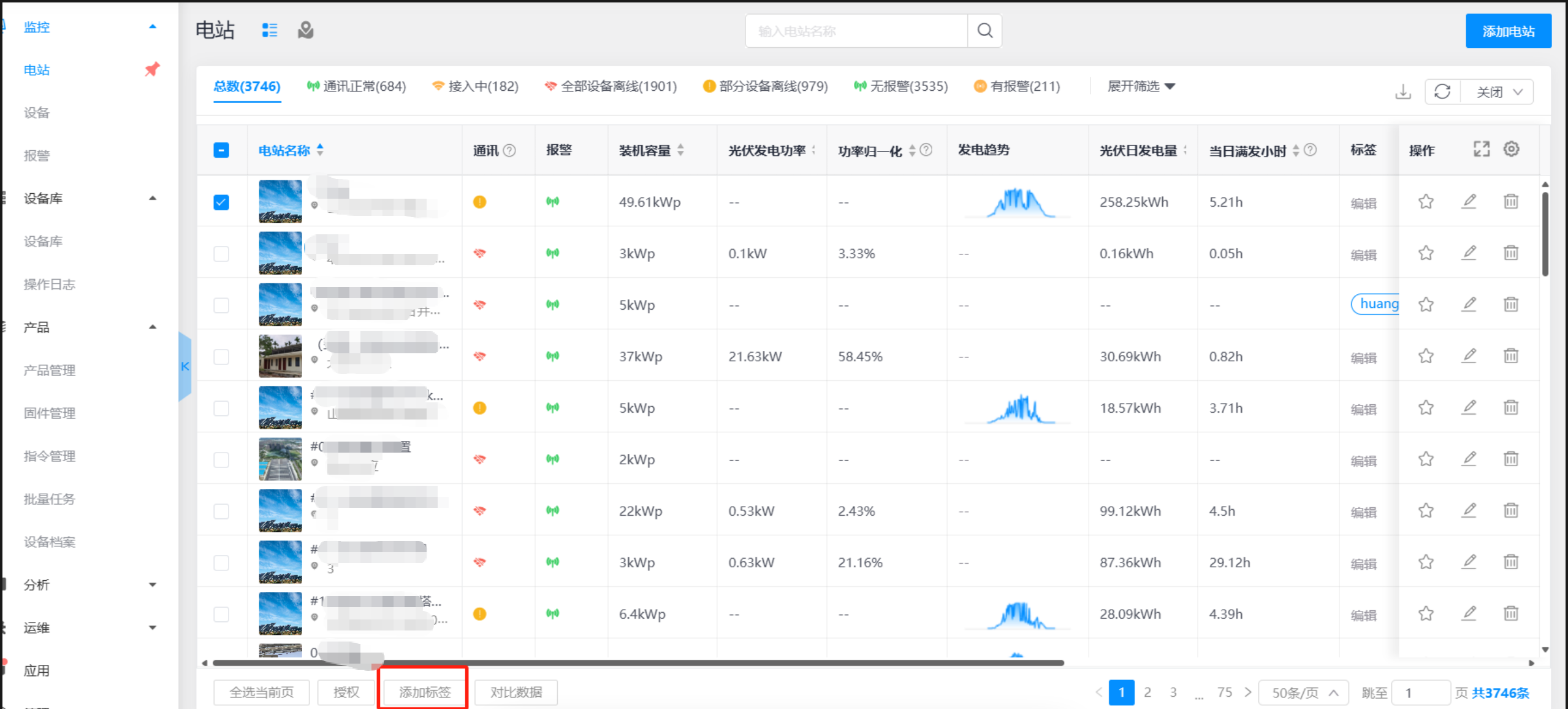 在电站列表页面最下方有个添加标签,可以在这里录入新的标签。