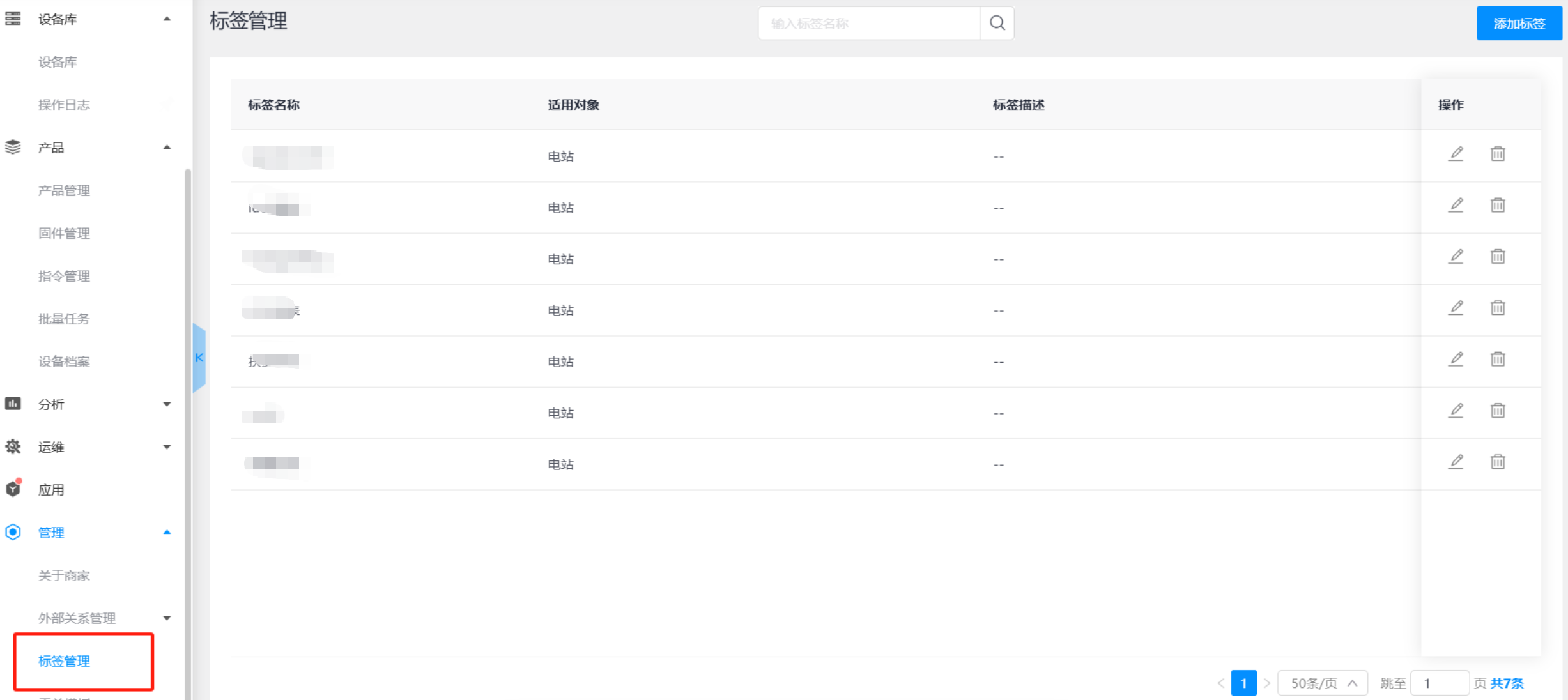 功能介绍:【标签】模块是主要针对电站区分时的标签信息进行汇总管理,通过标签管理便于对标签的应用及信息维护,目前可支持标签查询、添加标签、编辑和删除标签的功能操作。