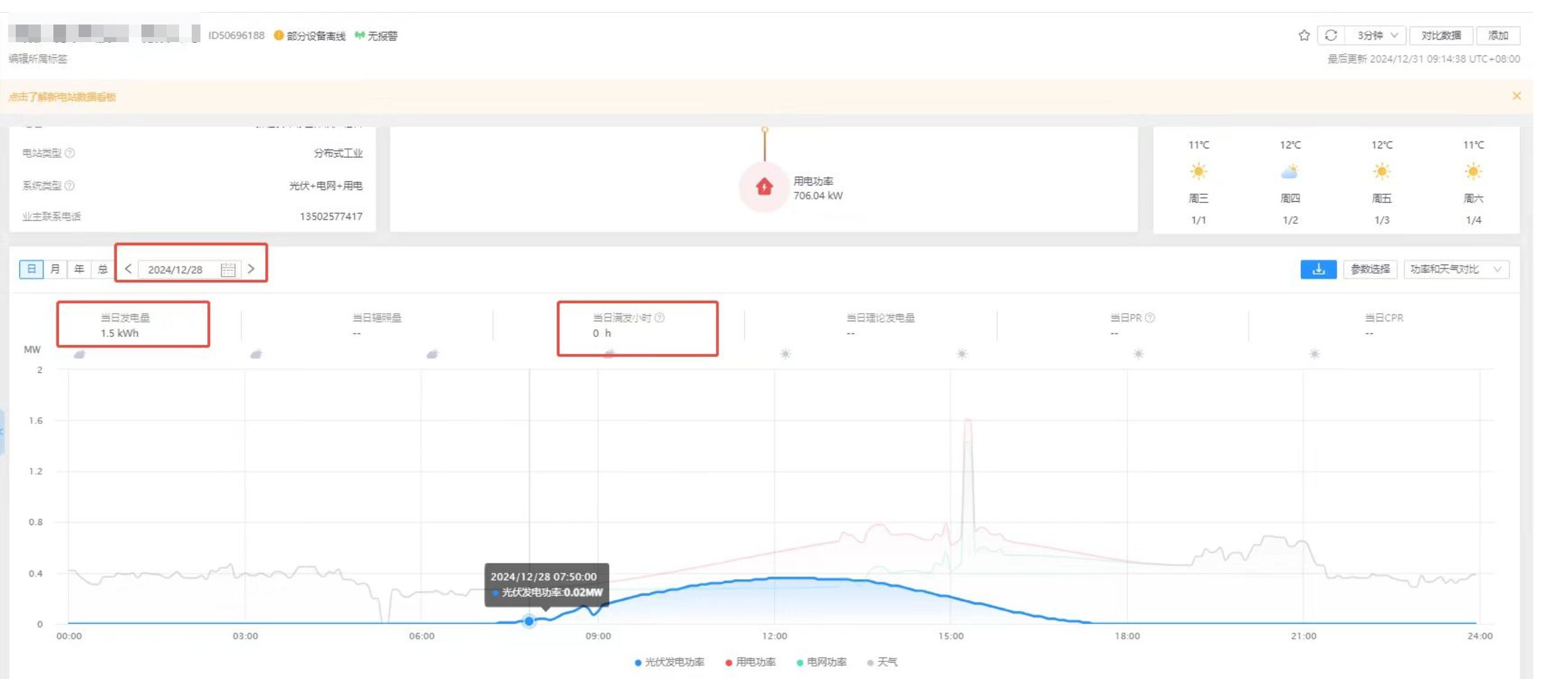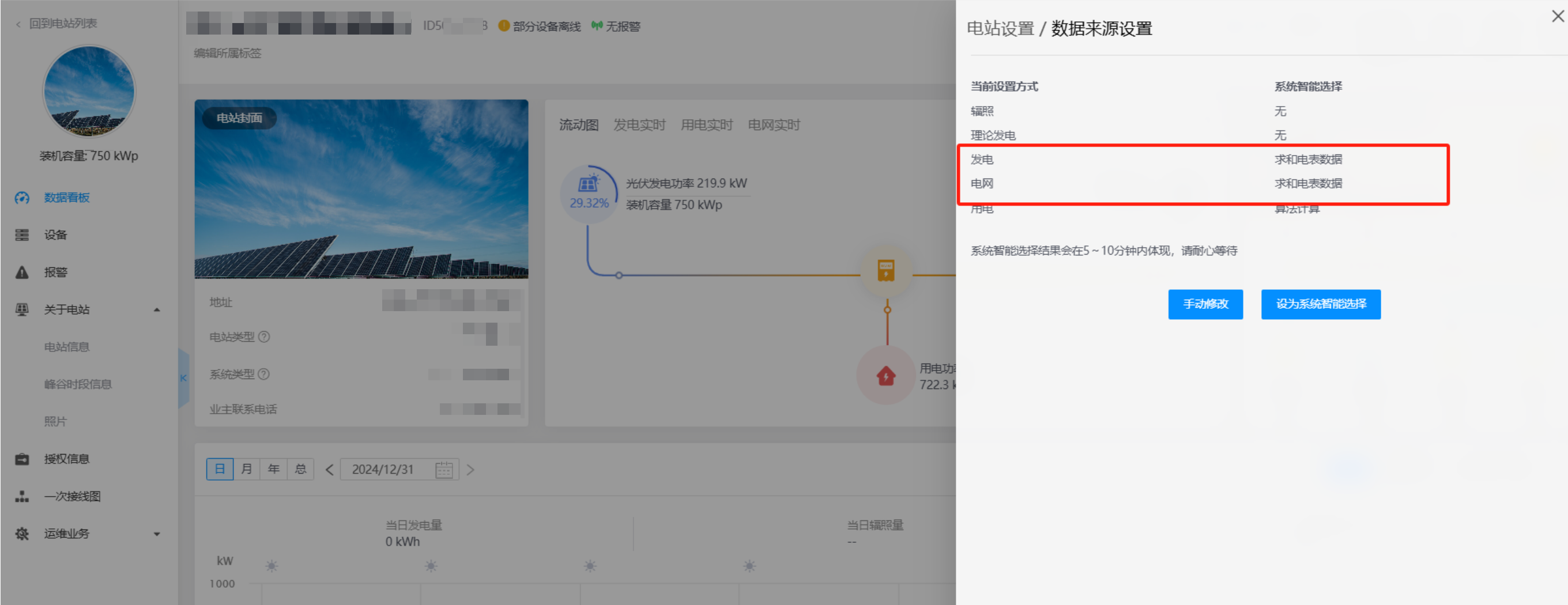 1、检查电站内的电站信息,确定装机容量是否正确