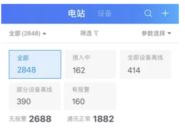 - 全部: 全部指的是当前登录用户数据权限下已完成添加的所有电站数量