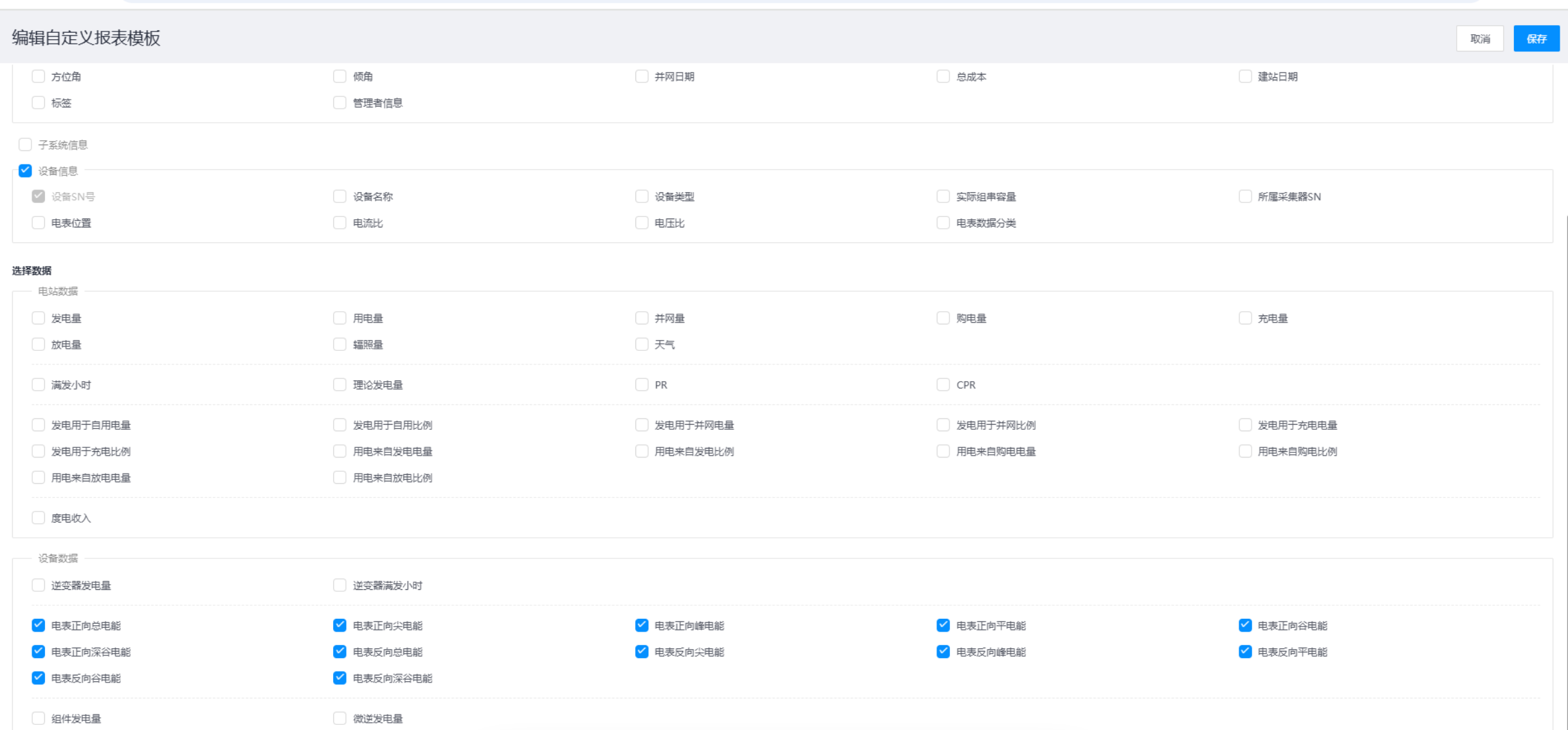 如果需要,请通过报表直接导出电站内所有电表的峰平谷数据,可以自定义一个新的报表模板